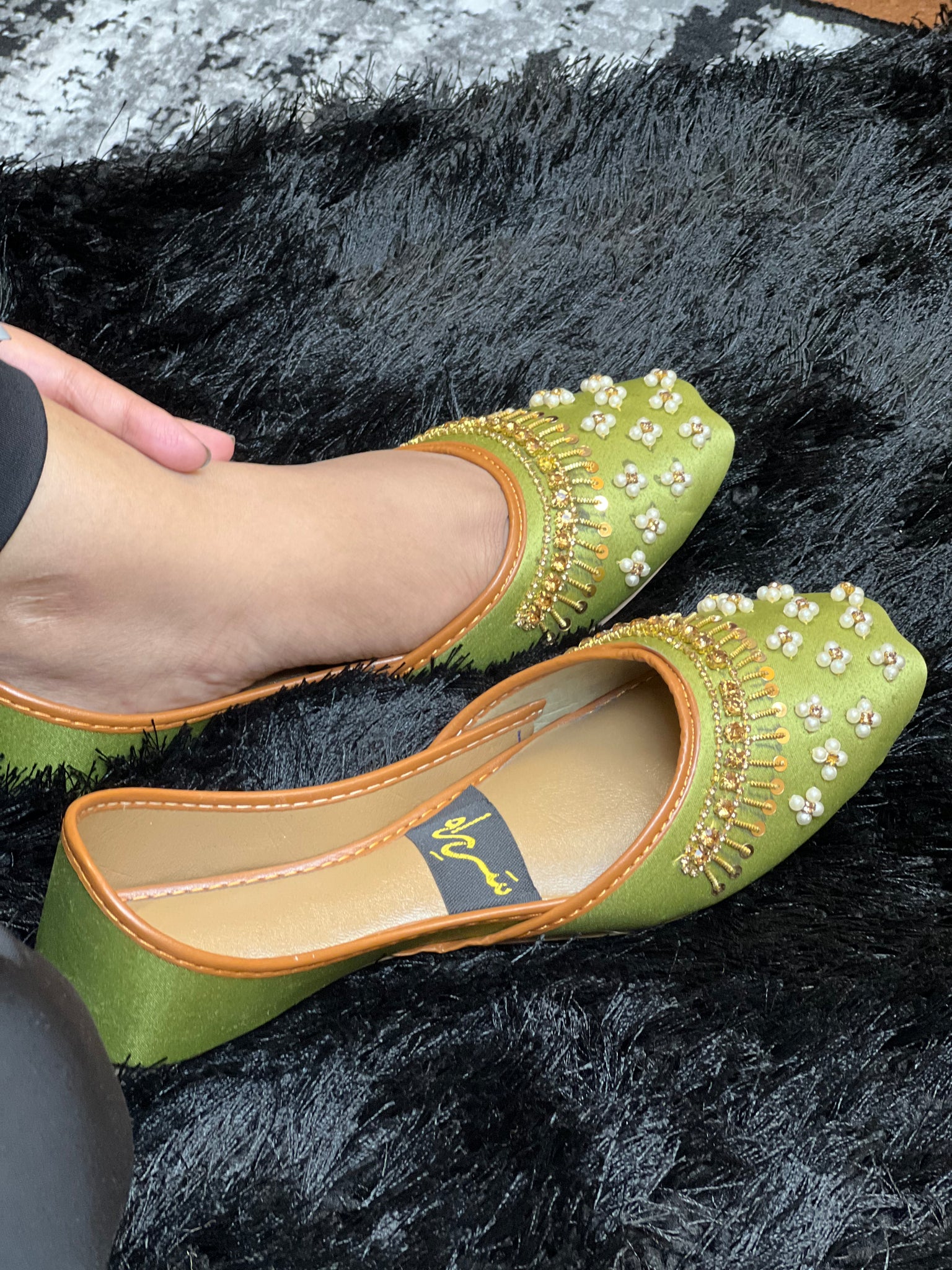 Perfect for day events, garden festivities, or casual chic styling, Green Aura adds a subtle sparkle to every step, blending artisanal charm with effortless grace.